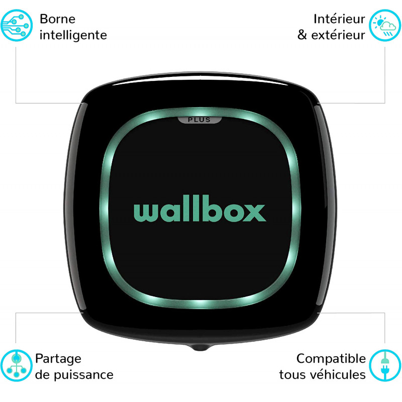 WALLBOX Borne de recharge Pulsar Plus - câble attaché 5m Type 2 - 1,4 à 11kW - triphasé - Bluetooth - Wifi